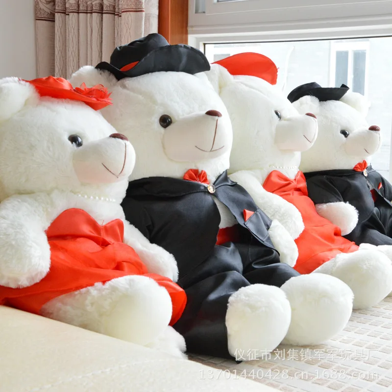 Discounts 1 Pair of Wedding Bear Dolls Cute Plush Stuffed Teddy Bear Toy Couple Gift White Fluffy Bear Home Furnishing Doll