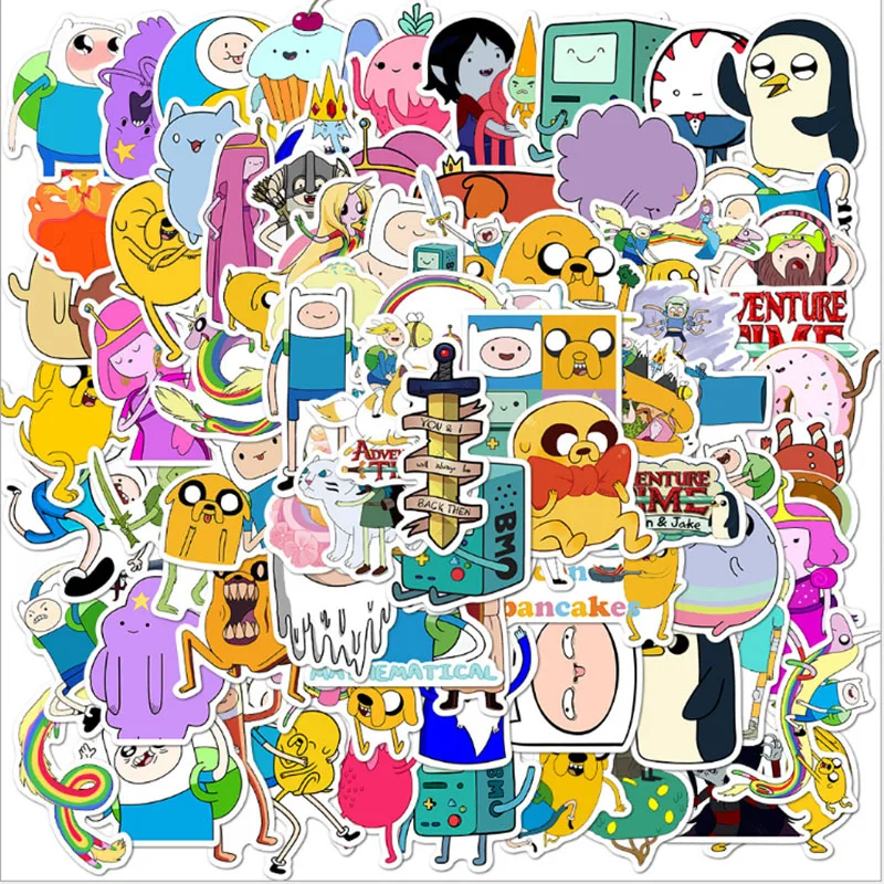 Product sale 100 pcs Adventure Time Graffiti Waterproof Skateboard Travel Suitcase Phone Laptop Luggage Stickers Cute Kids Girl Toys