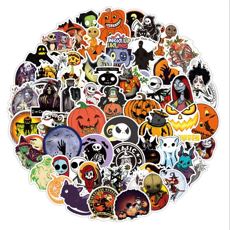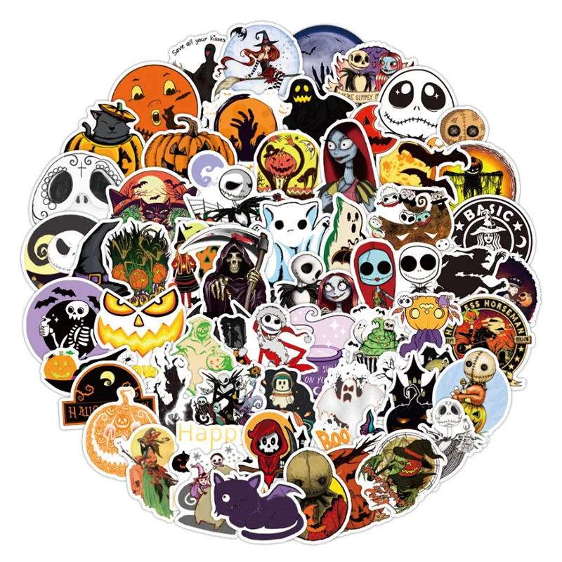 Good discounts 100 pcs Halloween theme series Graffiti Waterproof Skateboard Travel Suitcase Phone Laptop Luggage Stickers Cute Kids Girl