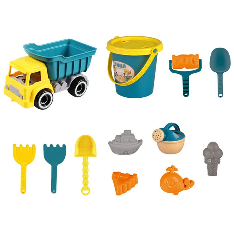 Discount 12Pcs Dump Truck Beach Toys Set Sand Play Set Sandbox Toys Sand Shovel Watering Can Toys Child Beach Sand Toys