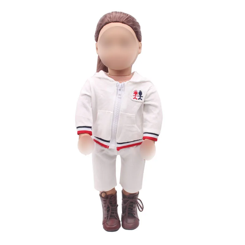 Sale 18 inch Girls doll suit Stylish hoodie with white pants American new born clothes Baby toys fit 43 cm baby accessories c315