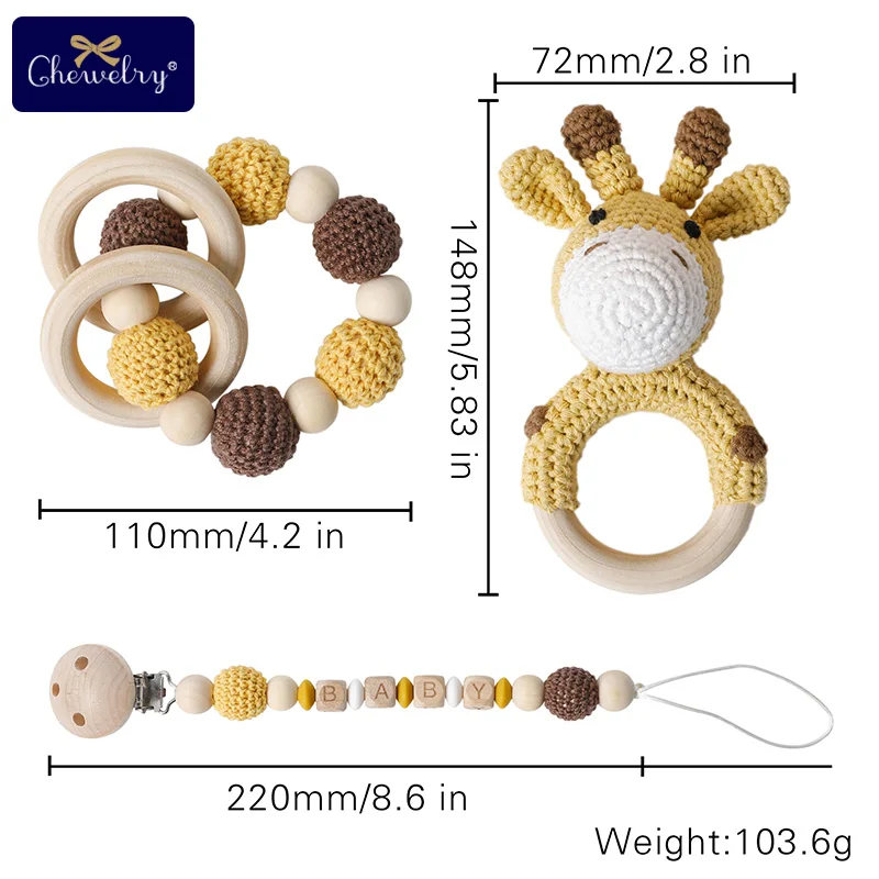 If You will buy for Baby & Toddler Toys, then 1pc Baby Rattle Crochet Giraffe Plush Animals Personalised Pacifier Chain Holder Teething Bracelet Gym Music Rattle Newborn Toys may be make you love