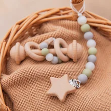 Profit 1pc Baby Wooden Teether Toy Music Rattle BPA Free Wooden Gym Ring Rodent Silicone Beads Newborn Educational Montessori Toys Gift