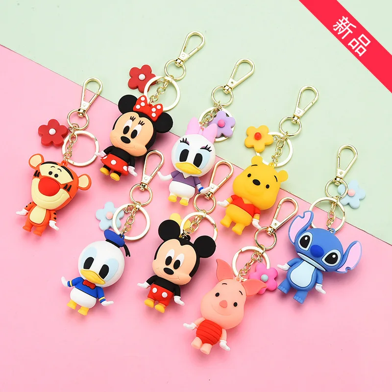Sales event 2021 Fashion Disney Mickey Rubber Keychains Cute Cartoon Baby Boy Girl Key Ring Women Lovely Bag Kawaii Car Accessories