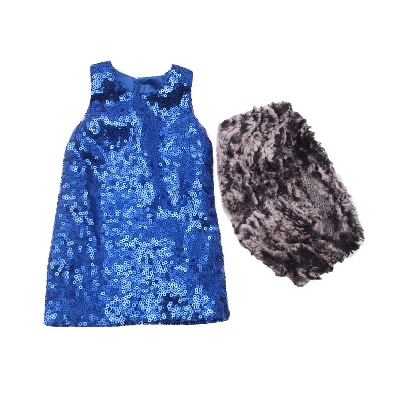 Sales event 43 cm baby dolls dress new born Fashion cocktail dress + plush shawl Baby toys fit American 18 inch Girls doll f318