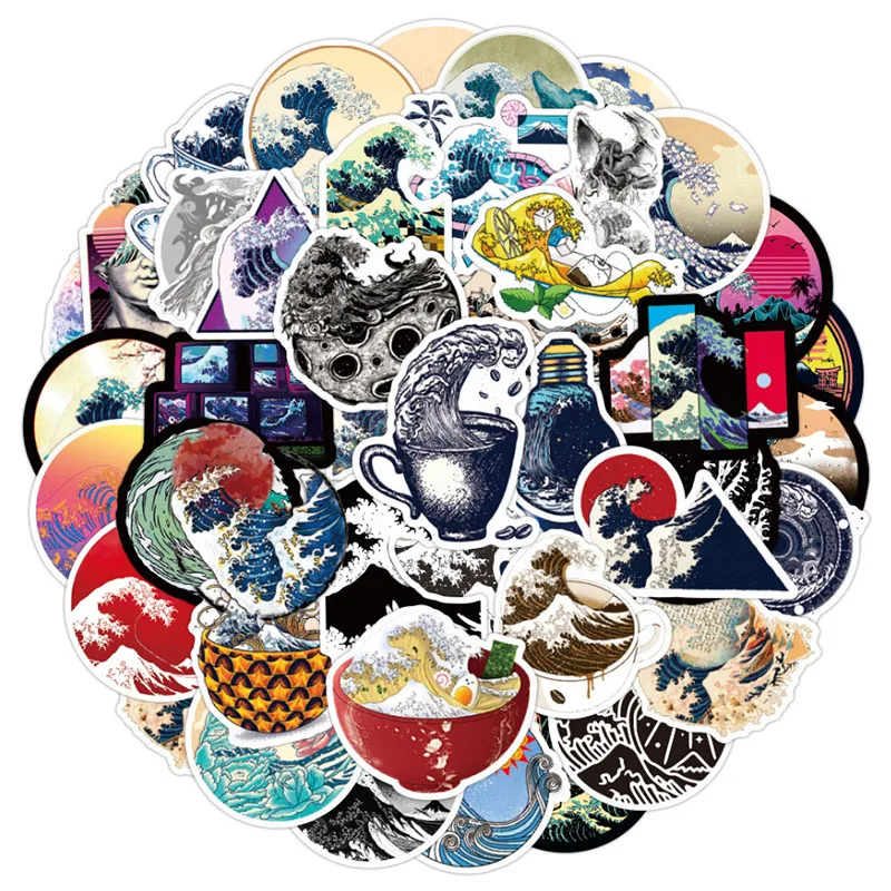 Sales 50 pcs Beach waves Graffiti Waterproof Skateboard Travel Suitcase Phone Laptop Luggage Stickers Cute Kids Girl Toys