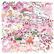 Discounts 50 pcs Cute strawberry milk cow Graffiti Waterproof Skateboard Travel Suitcase Phone Laptop Luggage Stickers Cute Kids Girl