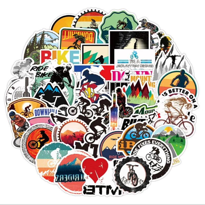 Sales 50 pcs Mountain Bike Graffiti Waterproof Skateboard Travel Suitcase Phone Laptop Luggage Stickers Cute Kids Girl Toys