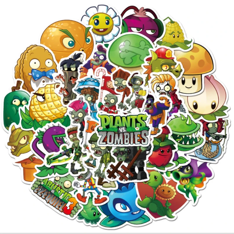 Discounts 50 pcs Plants vs. Zombies Graffiti Waterproof Skateboard Travel Suitcase Phone Laptop Luggage Stickers Cute Kids Girl Toys