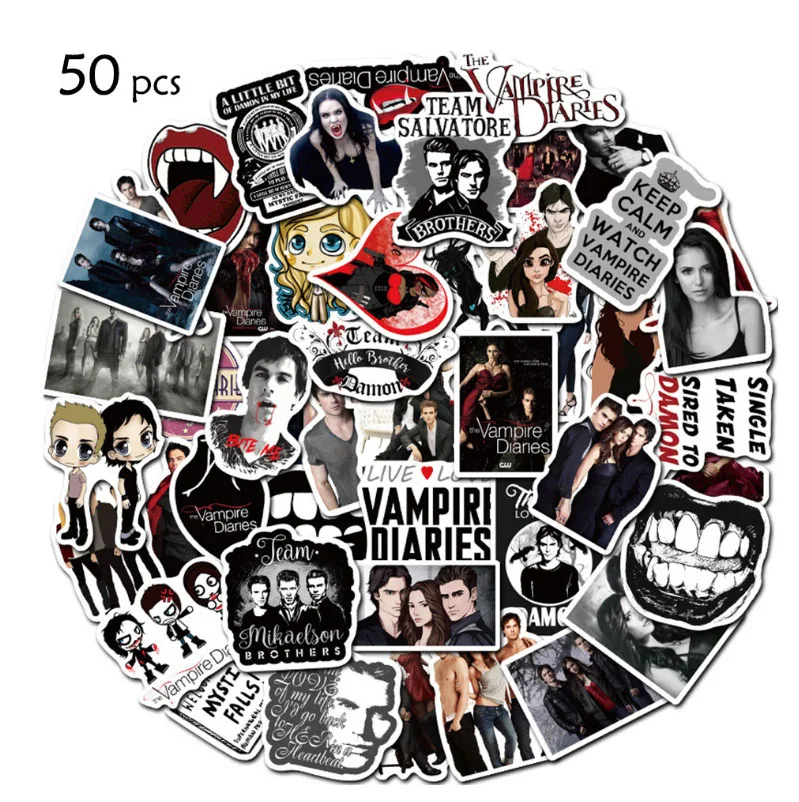 Sale price 50 pcs The Vampire Diaries Graffiti Waterproof Skateboard Travel Suitcase Phone Laptop Luggage Stickers Cute Kids Girl Toys