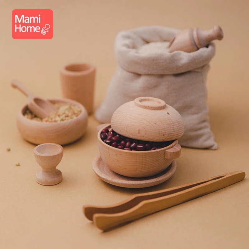 Deal 9pcs Babys Toy Wooden House Kitchen Toy Set Kids Pretend Play Set Wooden Simulation Kitchenware Early Learning Educational Toys