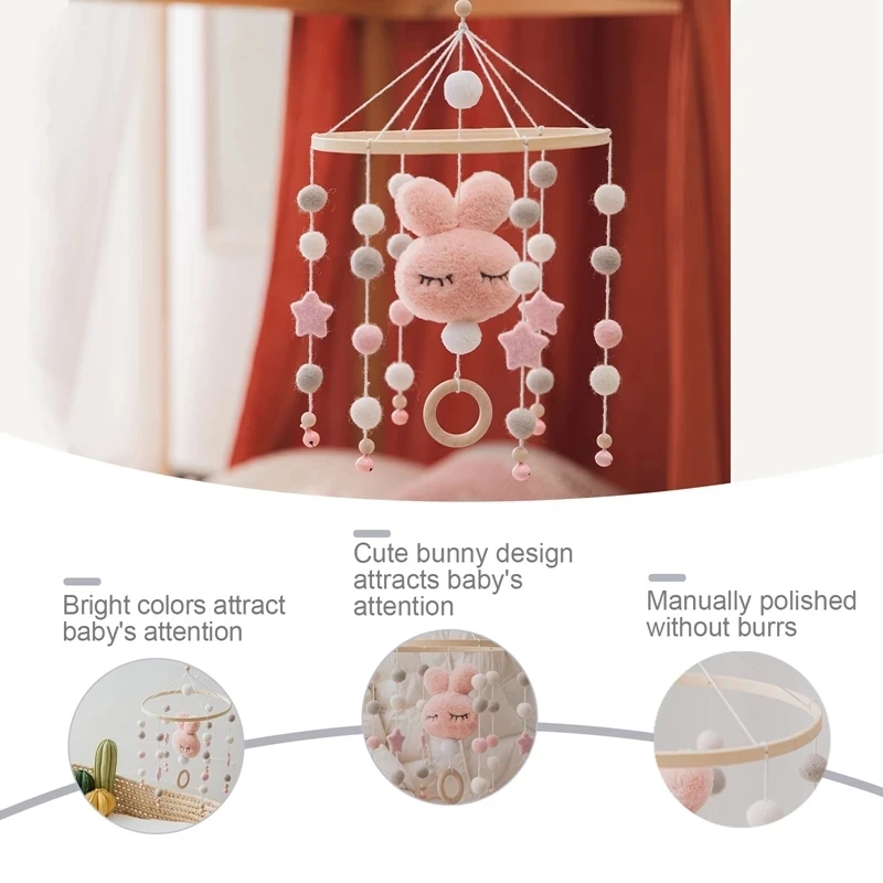 Sale made Baby Mobile Rabbit Rattles Toys 12 Months For Newborn Crib Bed Bell Hairball Rattles Nordic Decor Baby Crib Wind Chime Bed Bell