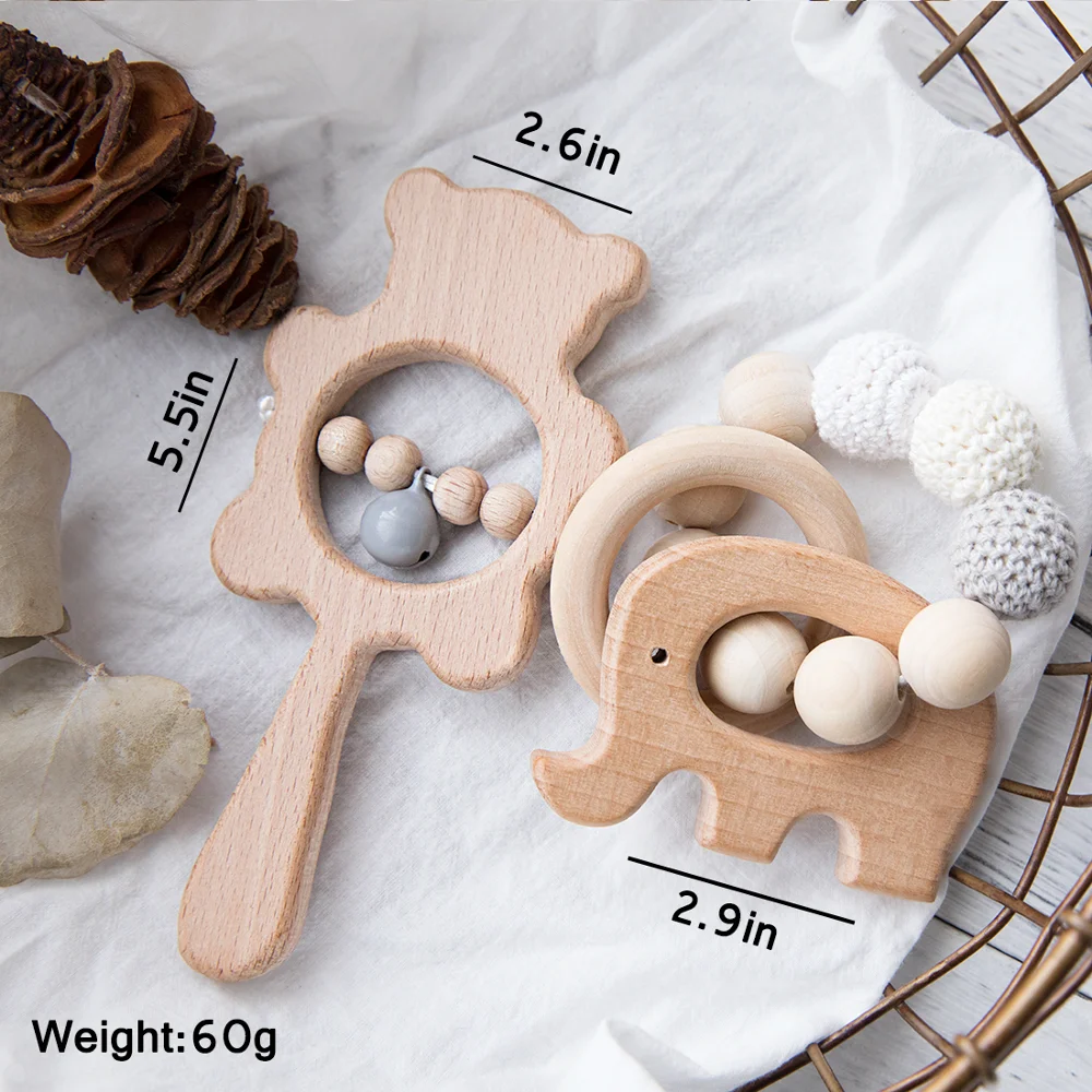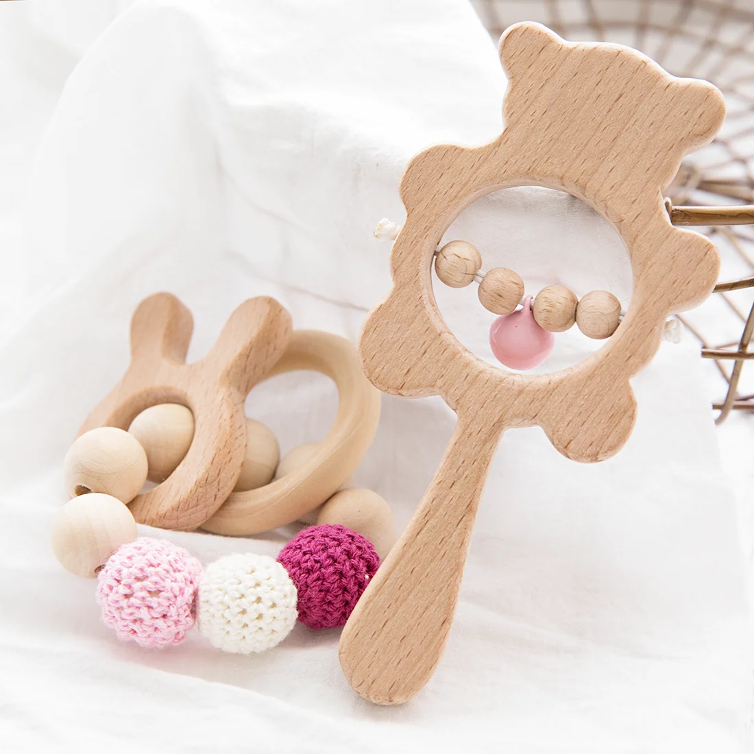 Sales event Baby Wooden Teether Toys Rattle Nursing Bracelet animal bear Musical Rattle newborn Montessori educational Stroller Toy Play Gym