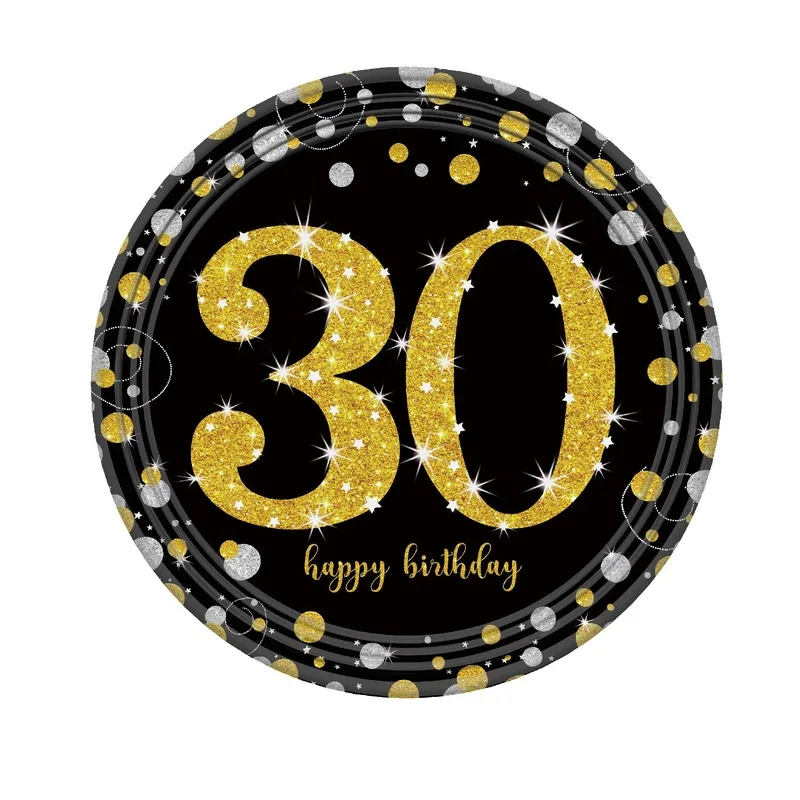 Final sale Black Gold Paper Disposable Tableware 30th 40th 50th 60th 70th 80th Birthday party Anniversary Wedding Party Decoration