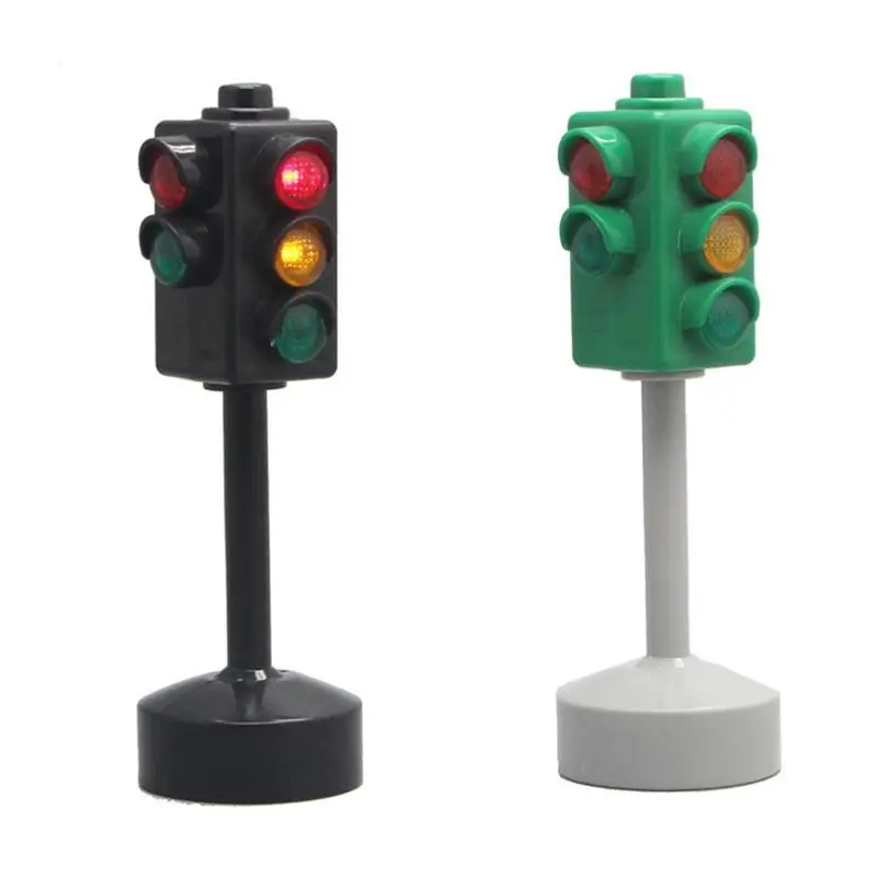 Sale made Black Traffic Signs Road Light Mini Block LED Children Traffic Safe Education Learning Montessori Train Car Toys Birthdays Gifts