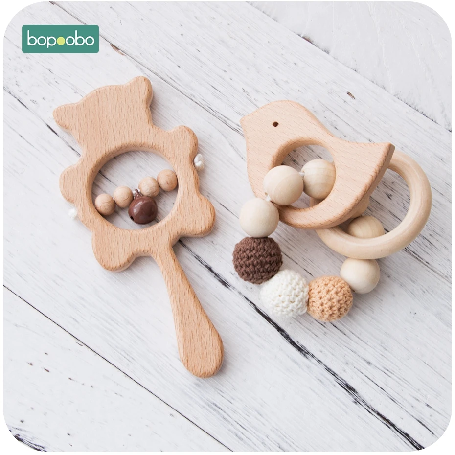 Offer Bopoobo Baby Teether Food Grade Beads Wooden Baby Pacifier DIY Rattle Soother Bracelet Bear Rattle Teether Music Baby Product