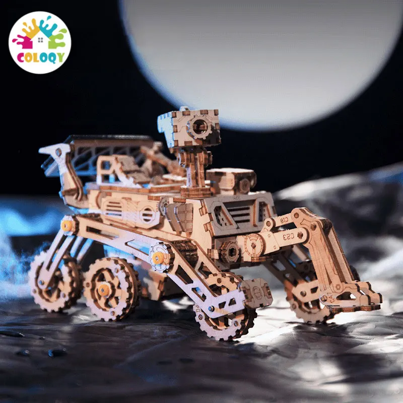 For sale COLOQY Toys Moveable 3D Wooden Jigsaw Toy Space Ship Hunting Solar Energy Toy 3D Wooden Blocks Assembly Gift for Children