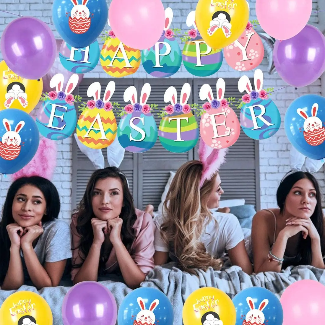 promotion Easter Balloon Set Happy Easter Cartoon Eggs Rabbit Bunny Print Banner Decoration Interior Party Decoration Kids Colourful Toys, if you really need and want this product.