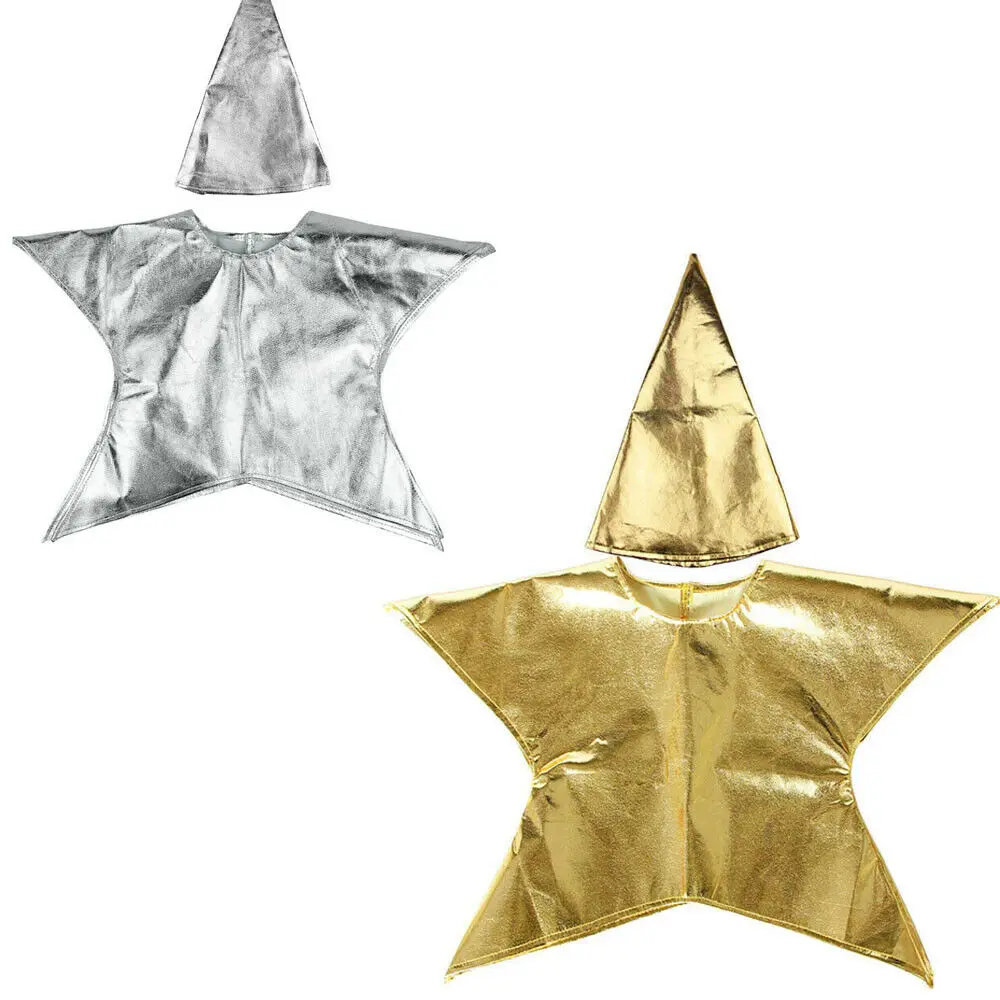 Deals Gold/Silver 90.6*60.7cm Star Costume Hat Children Kids Kindergarten Stage Performance Fancy Dress Outfit Set