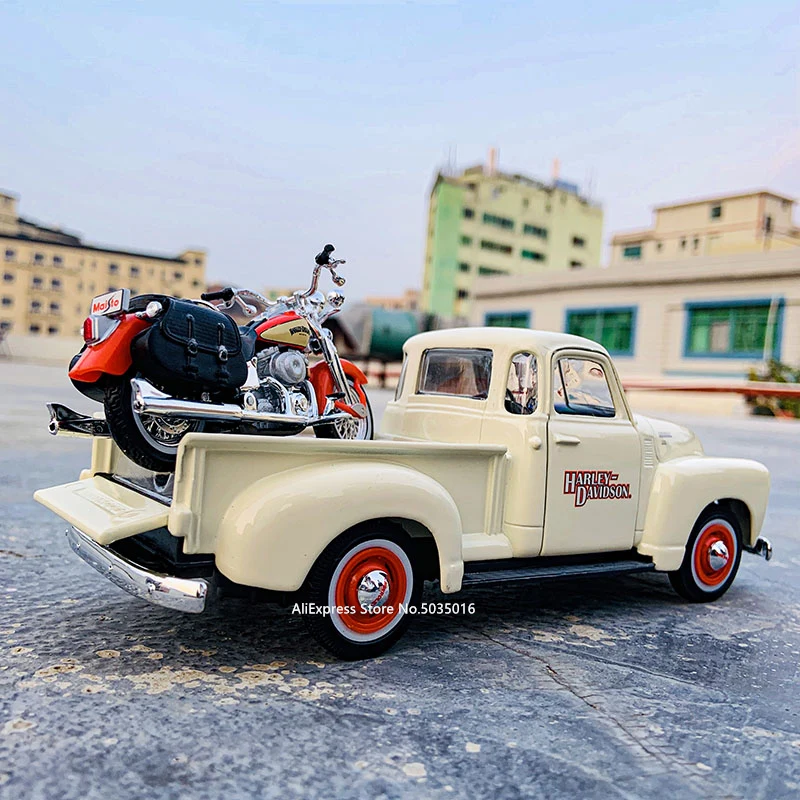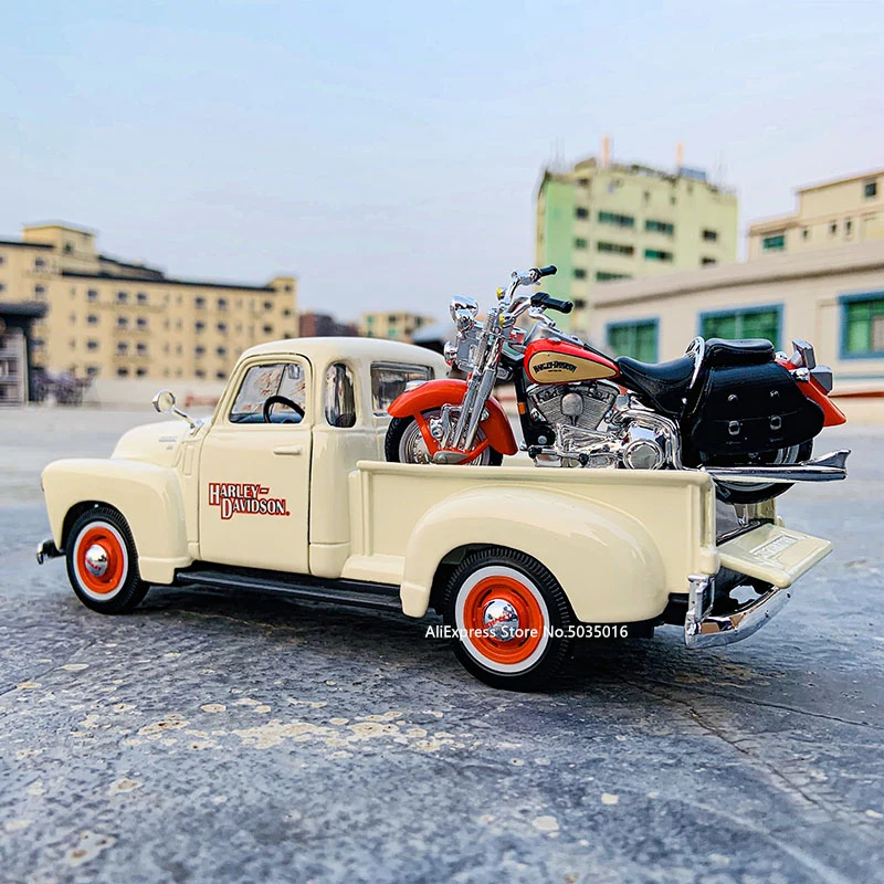 Very Cheap Maisto 1:24 1950 Chevrolet 3100 Pickup + motorcycle die-casting simulation alloy car model crafts decorative collection of toy t, if you really need and want this product.