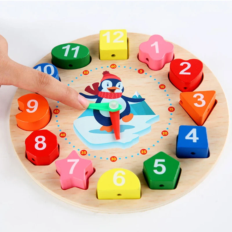 Discounts Montessori Kids Wooden Puzzle Clock Toys Education Beaded Shape Cognition Learning Toy For Children Preschool Clock Teaching Aid