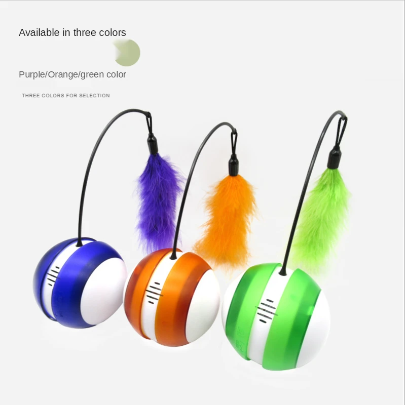 Great deal Pet supplies antidote toy tumbler electric automatic rolling amusing cat color ball feather stick toy