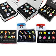 Sales Pokemones Gym Badges Kanto Johto Hoenn Sinnoh Unova Kalos League Region Pins Brooches Orange Islands Box Action Figures Toy