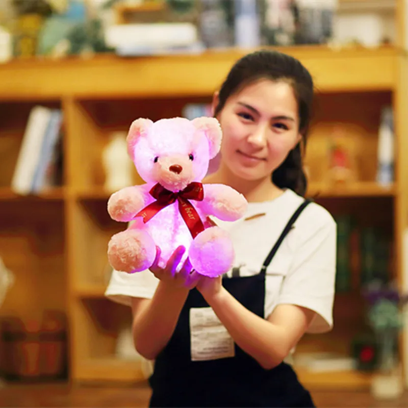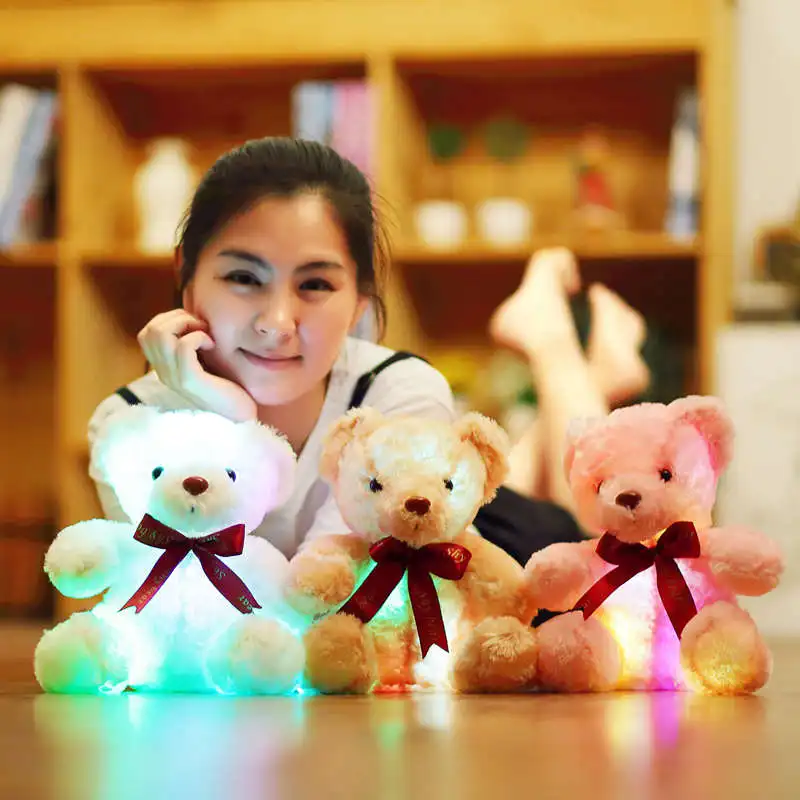 Sales Sitting 25cm Kawaii Glowing Teddy Bear Luminous Led Light Plush Toys Lovely Staffed Bow Bear Dolls Kids Girls Birthday Gift