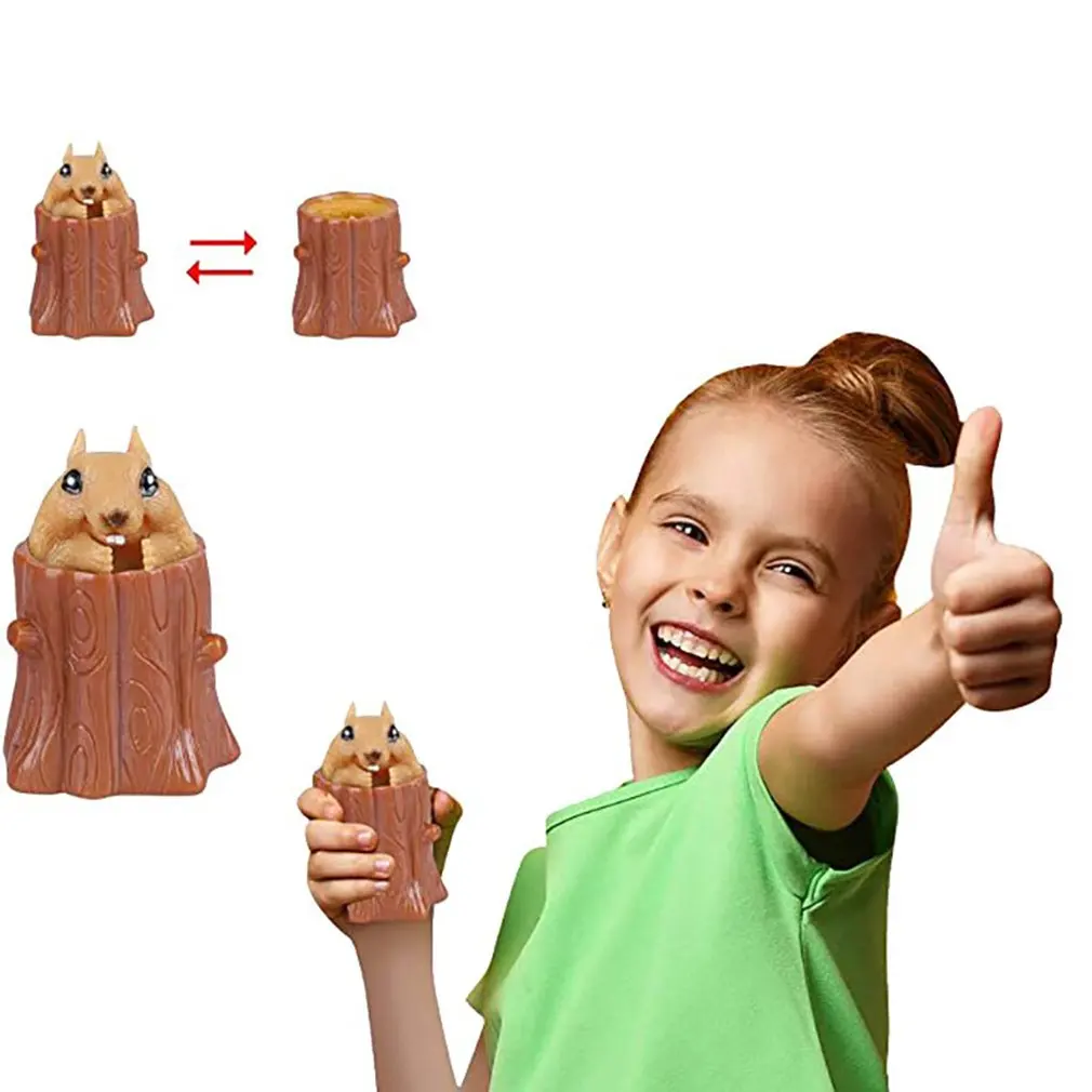 Sale Squeeze Rubber Squirrel Cup Children's Toy Evil Decompression Tree Stump Oak Cute Miniature Telescopic Pen Holder Game Gift