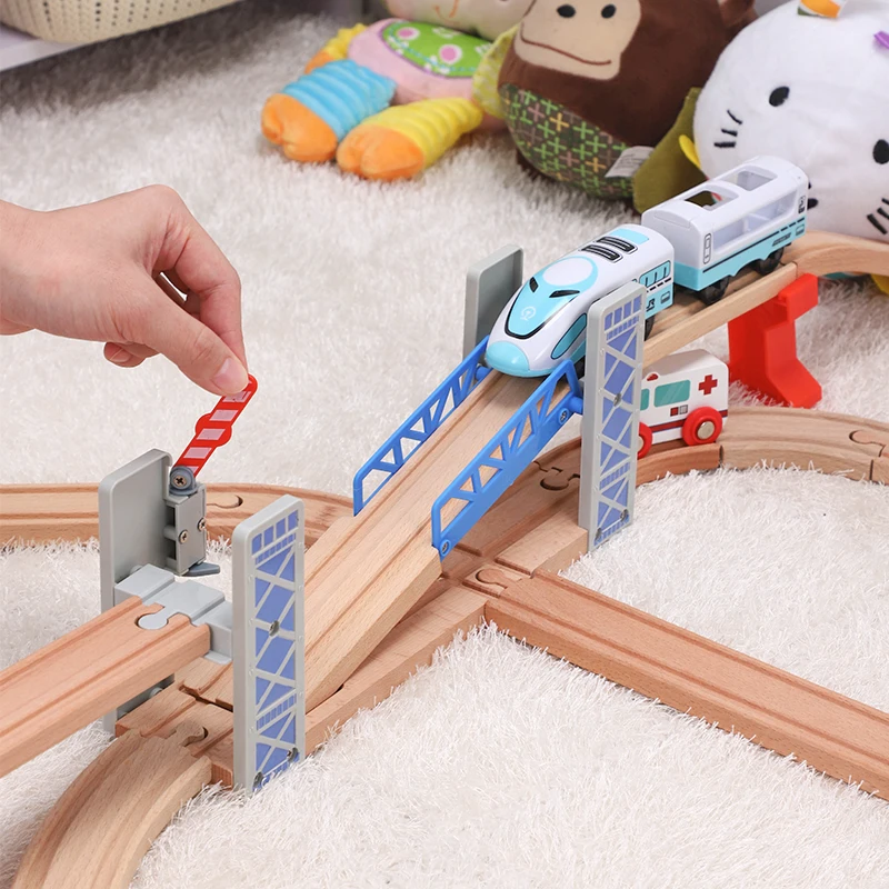 HOT SALE Wooden Fence Double Lift Bridge Overpass Train Tracks Railway Toys Set Accessories Model Kid's Gifts, if you really need and want this product.