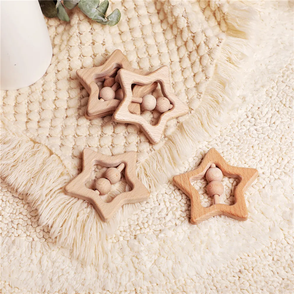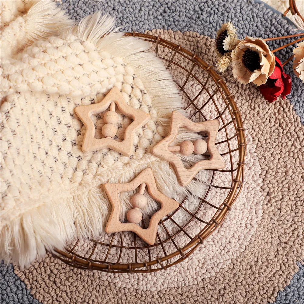 Sale price Wooden Rattles For Newborn Baby 1pc Baby Toys Star Shape Ring Teether Montessori Stroller Educational Toys Baby Wood Rattles