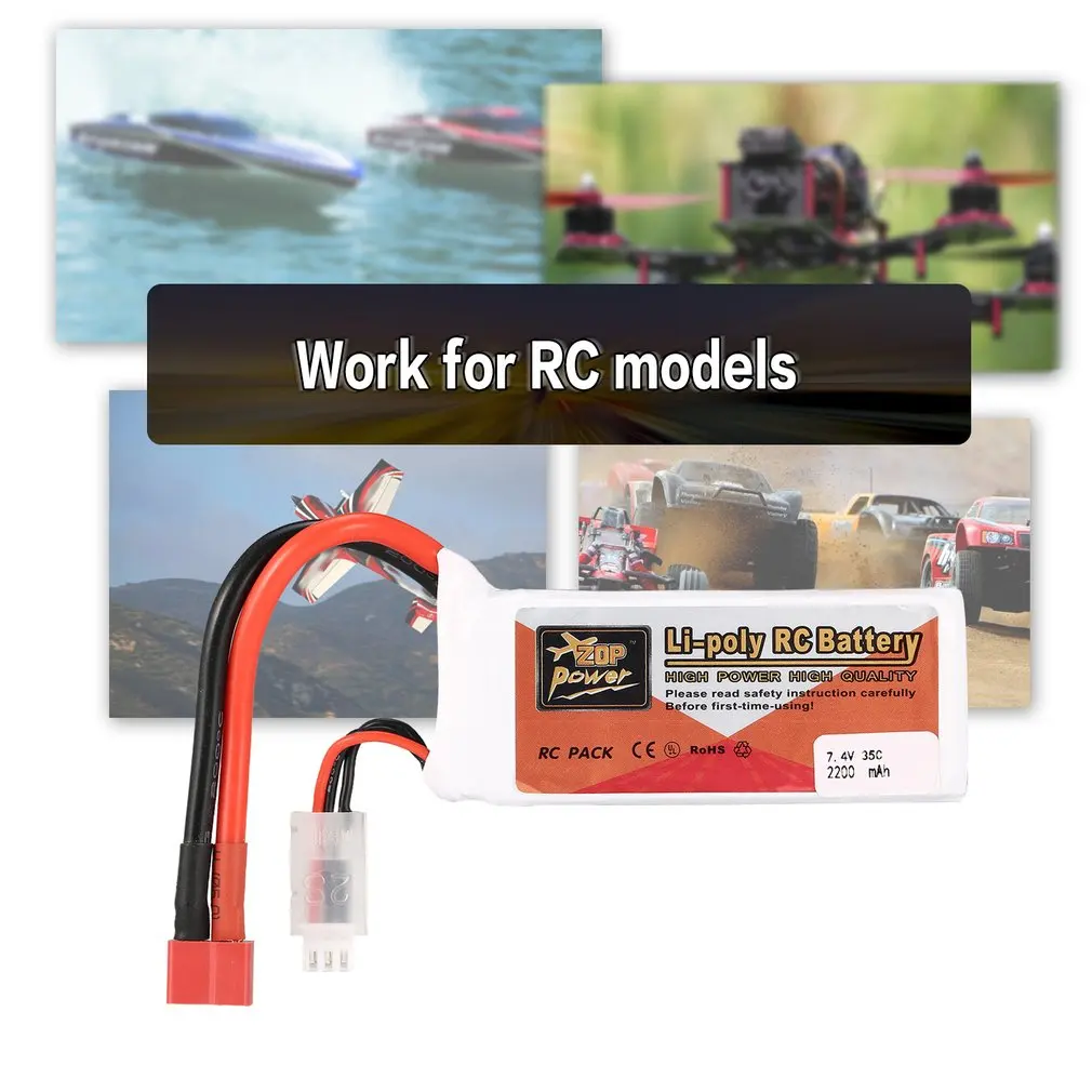 Discounts ZOP Power 7.4V 2200mAh 35C 2S 2S1P Lipo Battery T Plug Rechargeable For RC Racing Drone Helicopter Multicopter Car Model
